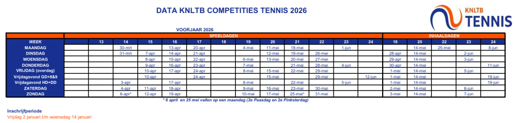 De volgende senioren teams spelen in het voorjaar mee met de KNLTB competitie: